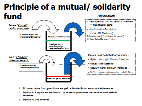 - Members and the companies pool their contributions into the Scheme. The Scheme uses all contributions to finance the health needs of all its members and pay for non-healthcare services.